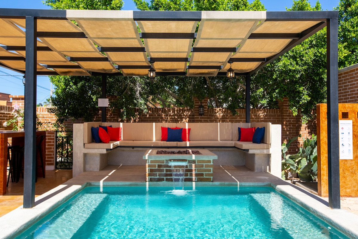 Clasificado como el alquiler vacacional romántico n.º 1 en Airbnb en La Paz por Trip101, Casa Cousteau es un ático de 2 dormitorios en una residencia privada muy deseada. Este ático de lujo se encuentra en el corazón de La Paz, junto al centro de la ciudad, con vistas al mar de Cortés y al paseo marítimo. Cuenta con todo lo necesario y está cerca de todo lo que hace que La Paz sea genial. Disfruta de impresionantes vistas y atardeceres desde tu balcón o desde la terraza de la azotea con piscina climatizada.