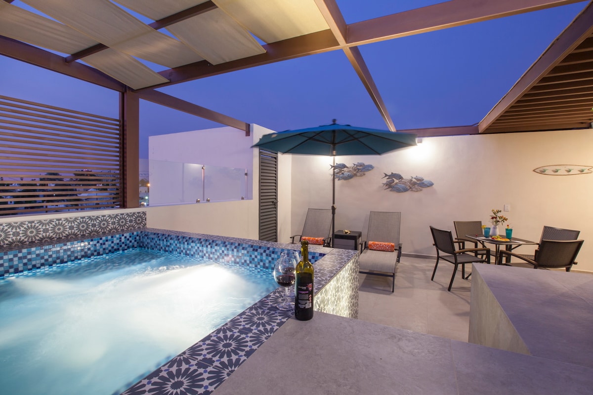 Esta ecléctica y artística casa de dos dormitorios está a menos de cinco minutos a pie de la hermosa playa/Malecón. Los propietarios han diseñado de forma única toda la casa para crear un ambiente relajado y acogedor para los huéspedes. Incluye un patio trasero cubierto y un patio con piscina privada perfecta para relajarse y disfrutar de los impresionantes colores nocturnos de La Paz. Perfectamente ubicada cerca de los mejores y más reconocidos restaurantes, cafeterías y tiendas de La Paz, todo a poca distancia a pie, y un minimercado a la vuelta de la esquina.