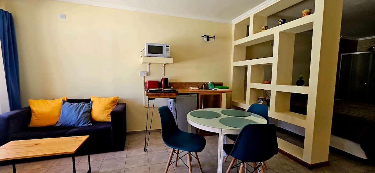 Simpleza, calidez y confort, de estilo minimalista distingue a este monoambiente de 26 mts2 para 2 personas con entrada independiente. El loft cuenta con calefacción central, cama queen+sábanas, cocina con vajilla completa, anafe eléctrico, microondas, heladera, cafetera, tostadora, pava eléctrica. Baño amplio+set de toallas; Sofá Ubicado en calle de asfalto en el centro del pueblo a 1 cuadra de ambas calles principales y de la cabecera al sendero del Torre.