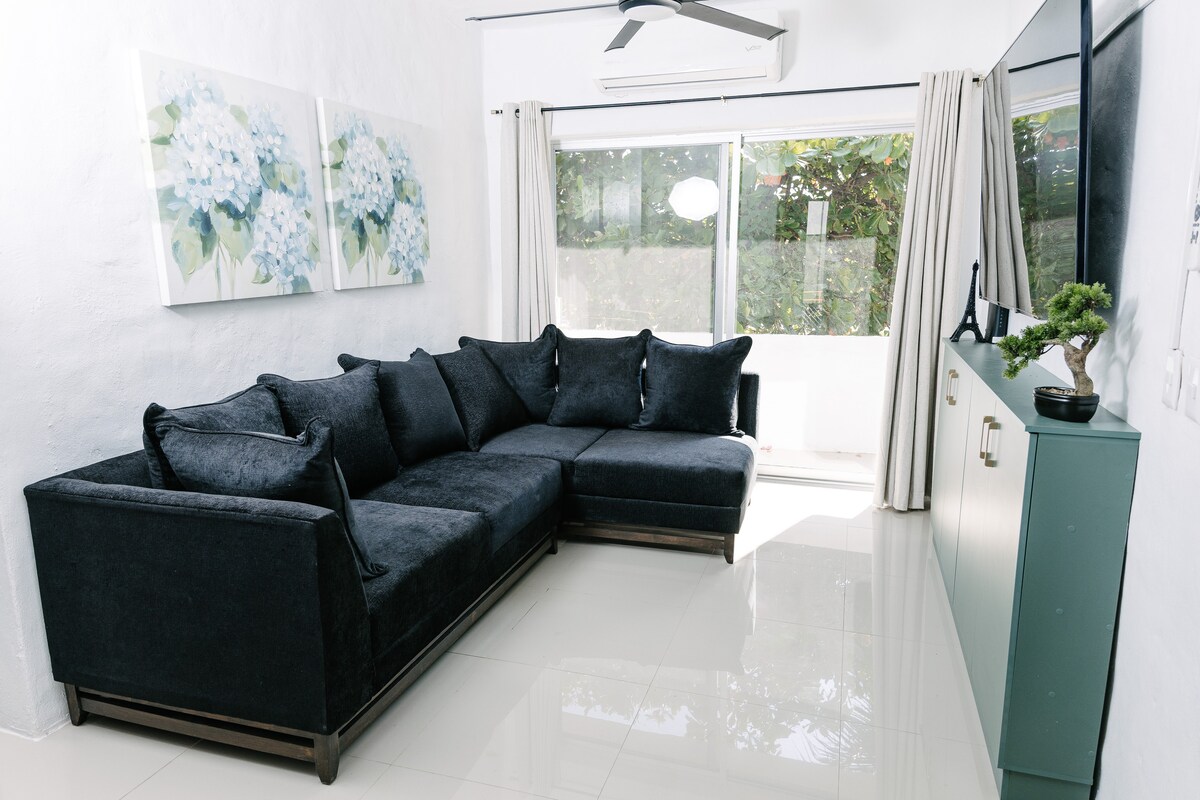 Departamento de 1 recamara para hasta 4 personas con A/C, por día, semana o mes. Cuenta con cocina, sala, comedor, televisión con cable, internet de alta velocidad ( fibra óptica) baño completo, está a solo 50 metros del acceso a la playa y cerca de restaurantes. Todos los servicios incluidos, también contamos con servicio de lavandería y renta de bicicletas. El dpto. Cuenta con una sombrilla para 2 personas y sillas para la playa 🏝️ No contamos con servicio de alberca.