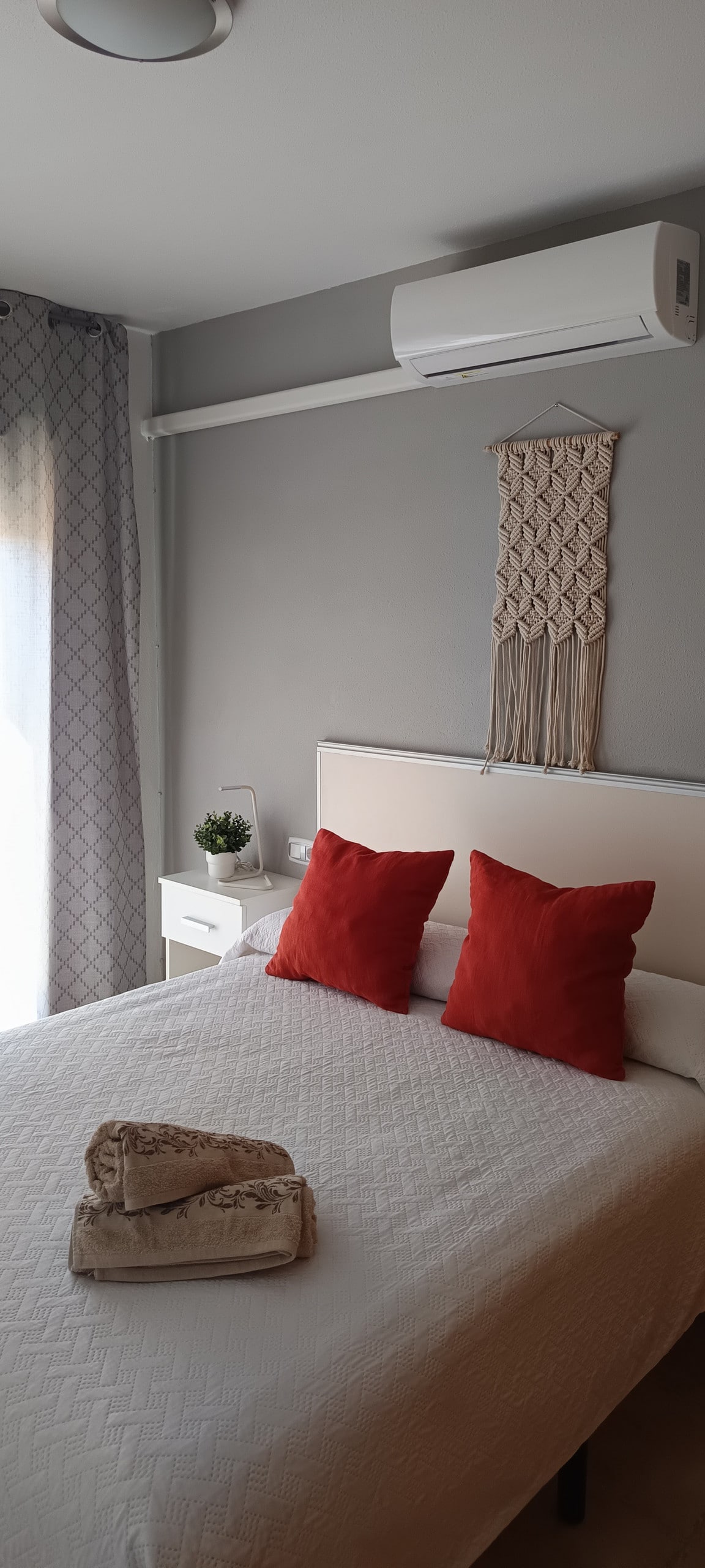 Apartamento de lujo , totalmente equipado , con vista . Se encuentra en pleno centro de Aguilas , a menos de 500m de las dos playas principales del municipio . En los alrededores se pueden encontrar todo tipo de servicios . Dispone de 1 cama de matrimonio situada en el dormitorio principal y un sofá cama situado en el salón ( el sofá cama es muy cómodo ) El piso está insonorizado y con aire acondicionado Desde su balcón se puede disfrutar de unas bonitas vistas de las 2 Bahias