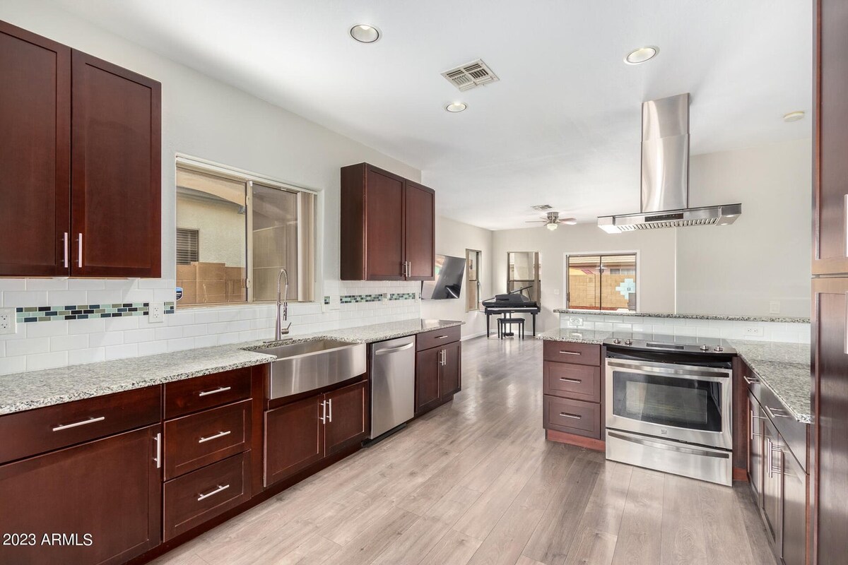 Maravilloso, cómodo, espacioso, más de 2300 pies cuadrados. Casa unifamiliar totalmente amueblada. ¡Mucho espacio para pasear con sala de estar y sala familiar con chimenea de gas! Disfruta del sol de Arizona o de las hermosas noches estrelladas en este patio trasero privado estilo resort. con patio cubierto, piscina de juegos y mesa de fuego de gas. También incluye patio vallado para tus mascotas. ¡Se admiten mascotas! 1 estacionamiento en garaje. ¡Gran barrio! Cerca de excelentes restaurantes y tiendas y acceso a la autopista. AZ TPT#21500053