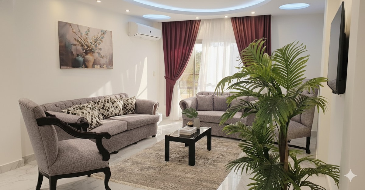 Comodidad moderna en rehabilitación: a pocos pasos del centro comercial Avenue y cerca del aeropuerto de El Cairo 🏙️ Bienvenido a tu elegante hogar lejos del hogar en Rehab City, perfectamente ubicado justo al lado del centro comercial Avenue y a pocos minutos del aeropuerto de El Cairo. Ya sea que estés aquí por negocios, compras o una visita familiar, este nuevo apartamento ofrece la mezcla ideal de comodidad y conveniencia. Características que te encantarán: • Aire acondicionado y TV inteligente. • Colchón ultra cómodo y un sillón reclinable eléctrico Lazy Boy para una verdadera relajación