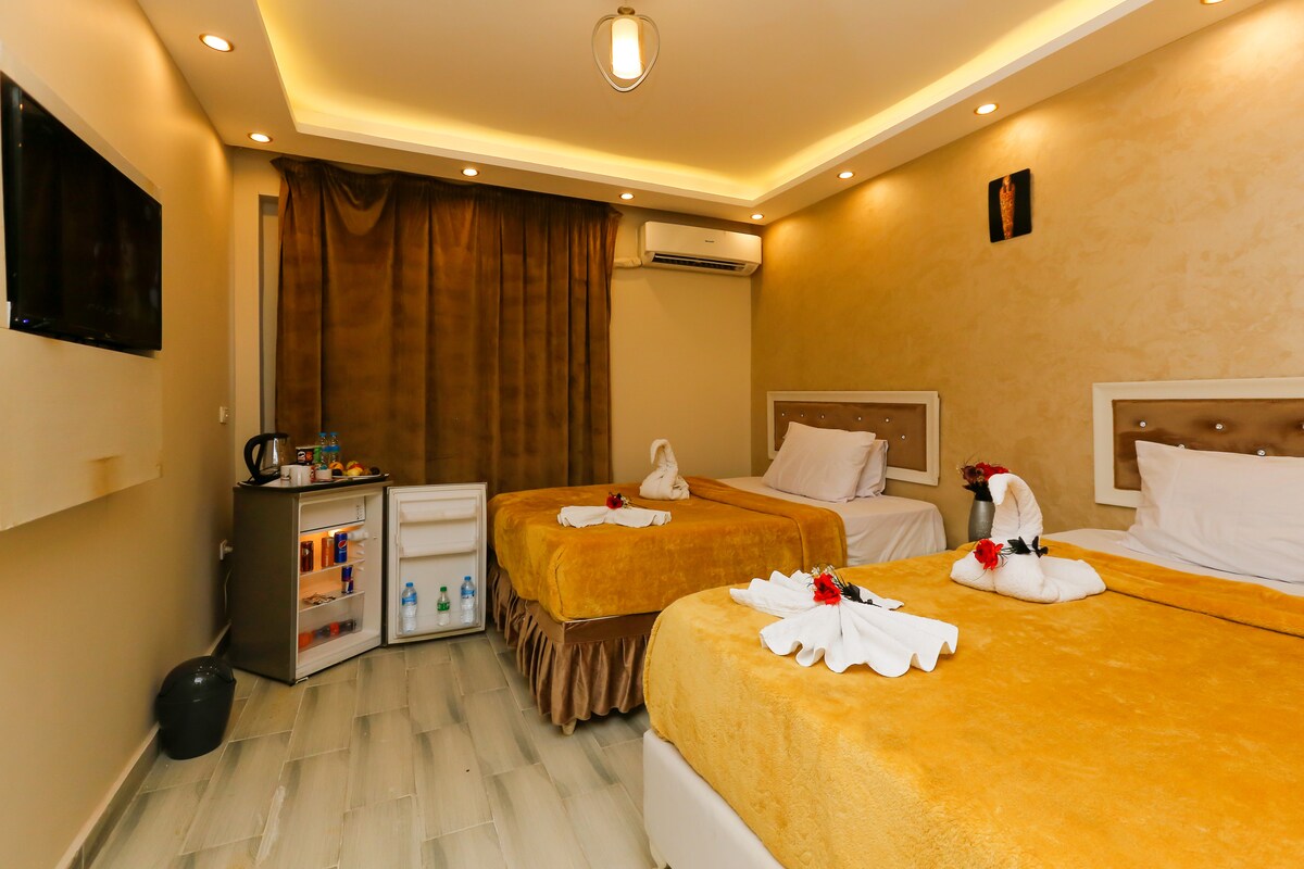 Te damos la bienvenida a tu retiro de ensueño en el corazón del antiguo Egipto. Ubicada a pocos minutos de las icónicas pirámides de Giza, nuestra habitación de lujo ofrece una experiencia verdaderamente única e inolvidable.