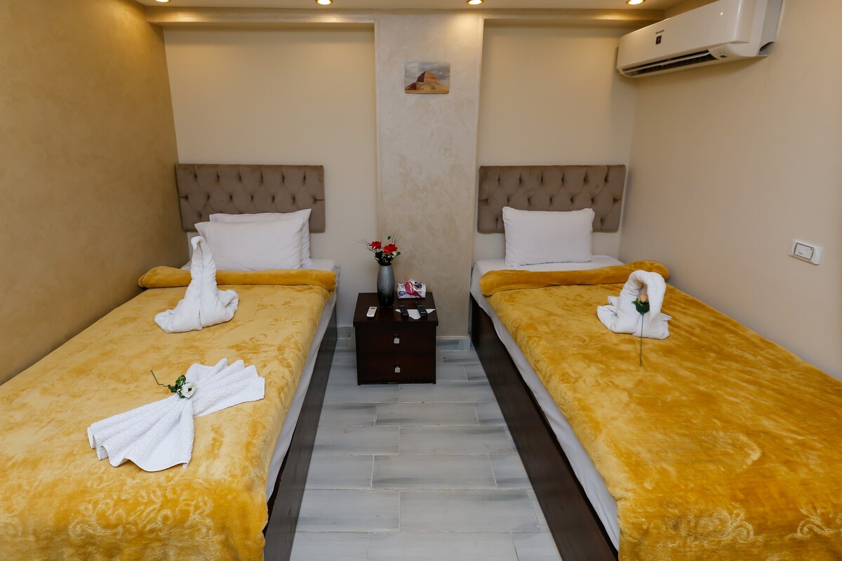 Explora El Cairo con nosotros No te pierdas la gran oferta de precios!!!!! 🧳Es su mejor opción para pasar la noche o más mientras visita El Cairo para su viaje de negocios o vacaciones de sólo un par de días. 📍Situado directamente en el corazón histórico de Giza. Muy cerca de : Pirámides de Giza Nuevo museo egipcio Pirámides de Saqqara Dahsure