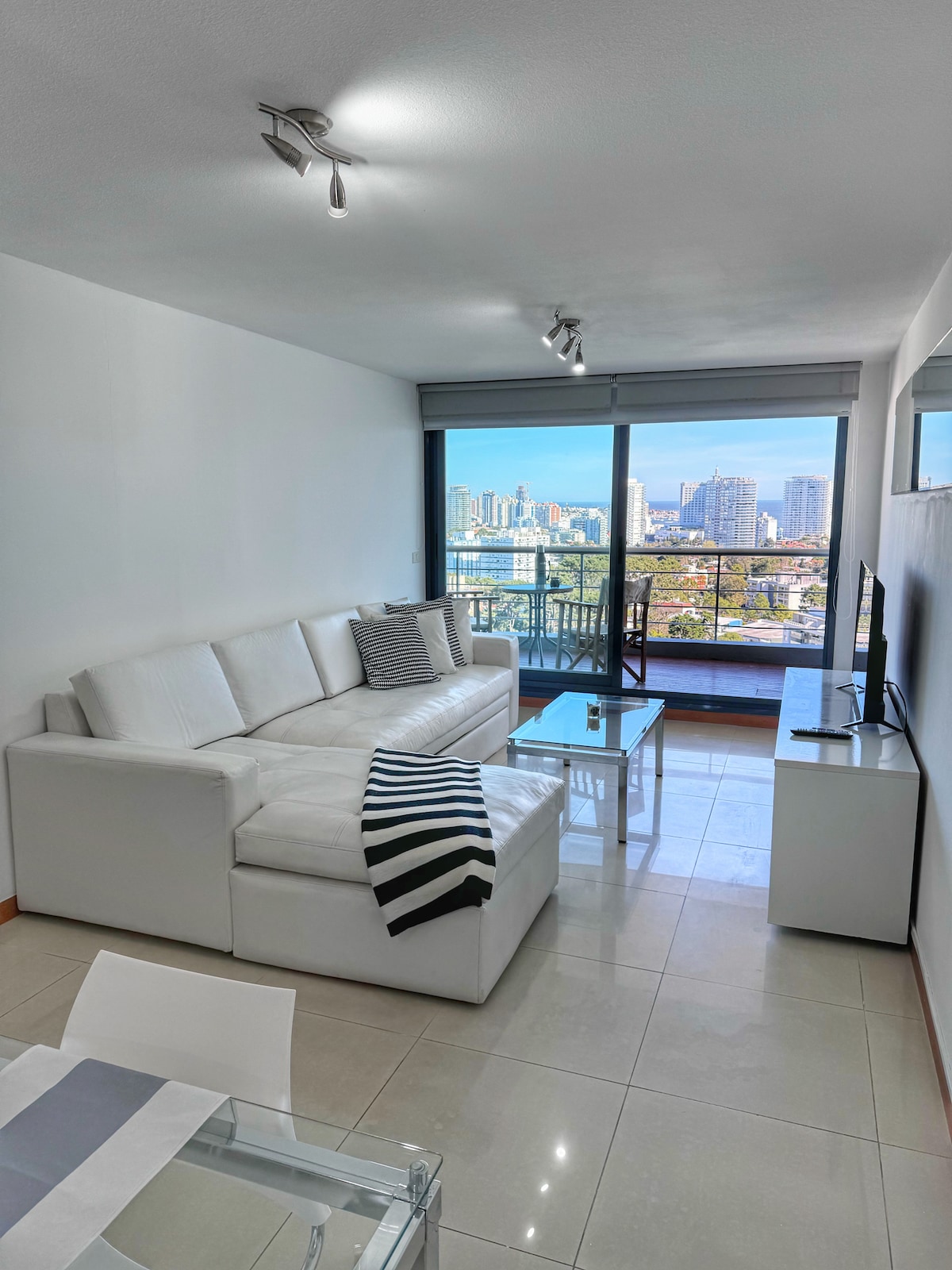 Moderno apartamento para 2 personas totalmente equipado con espectacular vista al mar y la península con 2 balcones, situado a cuadras del centro y de las playas mansa & brava. Incluye el uso de cochera propia, amenities de alta categoría como piscina interna y externa, sauna, gimnasio, business lounge y recepción atendida 24h. Ideal para relajarse y disfrutar de Punta del Este durante todo el año o combinar descanso y trabajo ya que dispone de una conexión rápida de internet (200 Mbps).