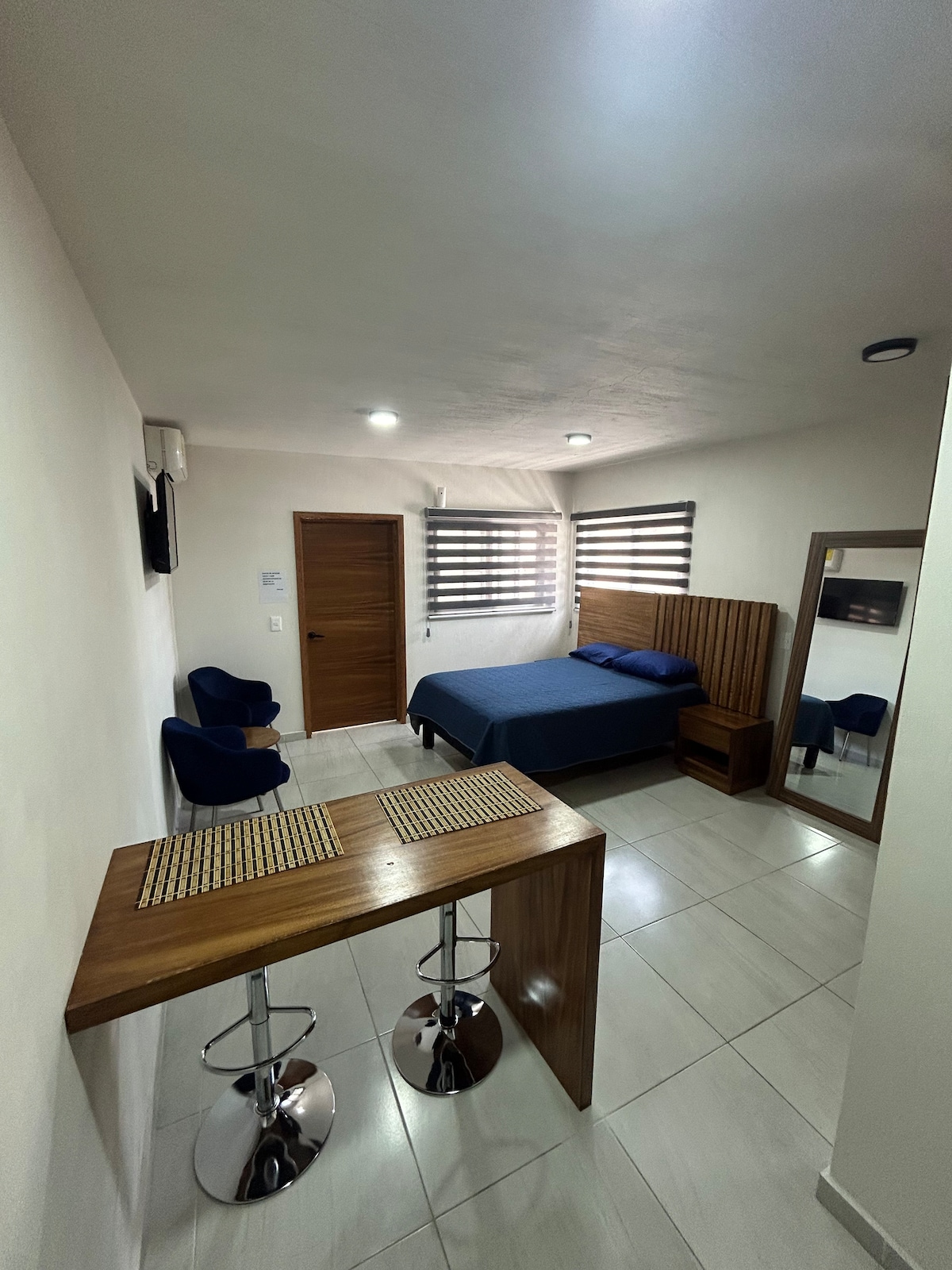 Hermoso y elegante Loft muy cerca del centro de Tlaquepaque donde encontrarás experiencias culinarias, culturales, amenidades y vida nocturna, a unos minutos caminando del tren que conecta toda la ciudad. El Loft cuenta con Aire acondicionado en habitación, área de cocina y sala, cuenta con ducha de lluvia de alta y media presión, cerradura digital, pantalla 4K, internet de alta velocidad 210 Mbps, y sensor CO2. No cuenta con cochera Disfruta de una hospedaje con estilo y elegancia