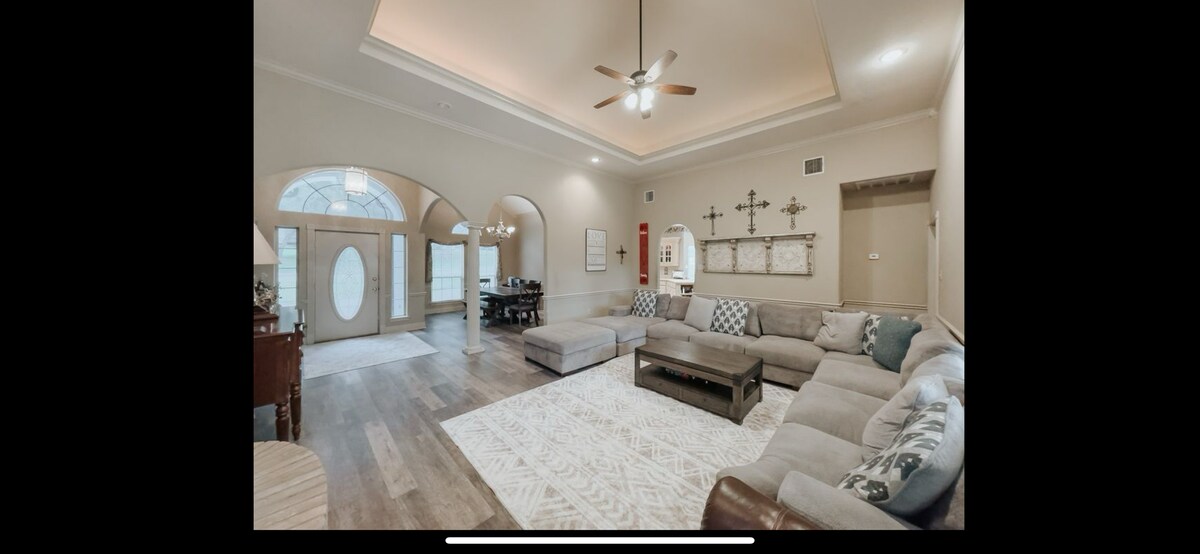 Una espaciosa casa de 4 dormitorios y 2,5 baños en un área privada y segura. Ubicado en el barrio principal de DFW Texas Muy cerca de todas las principales tiendas, lugares deportivos AT&T Stadium Texas Rangers, American Airlines Center, Dickies Arena), cerca de lugares de entretenimiento Six Flags sobre Texas,Texas Live) y varios bares y restaurantes está a 20 millas del aeropuerto DFW. 2 vehículos de estacionamiento disponibles para alquilar. La cocina está totalmente equipada. Las dos salas de estar tienen un televisor inteligente de 65 pulgadas en cada piscina comunitaria.