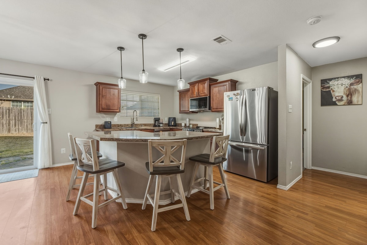 Our home is a country oasis where you and the family can relax and enjoy the fresh air and blue bonnets. Close to down town Ennis and all of the events and festivals. With the 12acres surrounding you everyone can enjoy the country feel minutes from Waxahachie and the Motorplex. The kitchen has everything you need to feel right at home. *Pets allowed upon approval. Additional cleaning fee may apply.