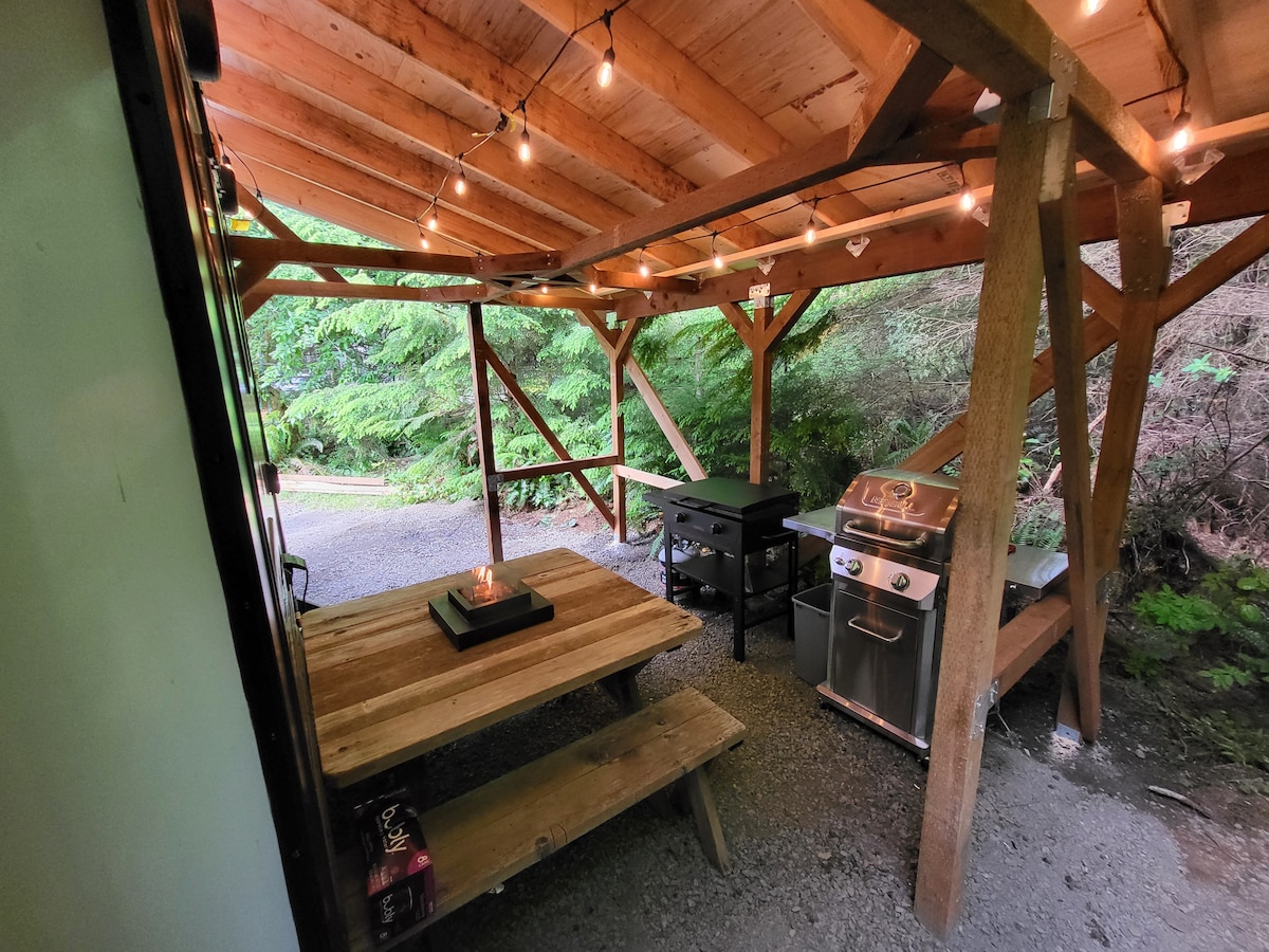 Tranquilo entorno rural situado a 14 millas al norte de Forks. Explora todo lo que la península olímpica tiene para ofrecer: hermosas playas, pesca, senderismo, ciclismo y actividades al atardecer. Encontrarás tu alojamiento limpio y relajante. Disfruta de una fogata y relájate con tu bebida favorita. Con un pequeño costo adicional, puedes invitar a familiares o amigos cercanos que tengan una autocaravana, caravana o tienda de campaña. Tenemos espacio para dos vehículos recreativos con potencia de 30 amperios que también podrían cargar tu vehículo eléctrico.
