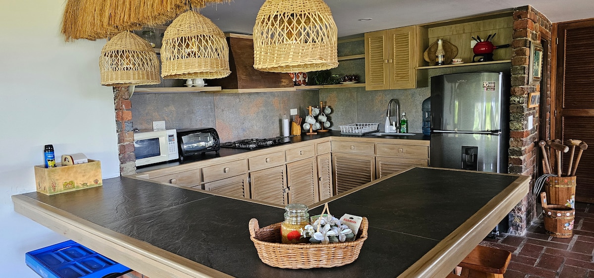 Relájate en esta escapada única y tranquila. Esta casa en parcelación de 3 habitaciones amplias, jacuzzi, bbq, acceso a la represa y una imponente vista a la piedra del Peñol ★"Mi esposa exploró las opciones y siente que tu hermosa villa es su favorito en el Peñol". - Marcela, Septiembre 15 Exclusivo condominio con pocas casas lo cual le brindara seguridad durante su estadia, amplia terraza para sus reuniones y disfrute en familia o amigos. Sitio muy seguro y comodo ☞ Casa recién amoblada