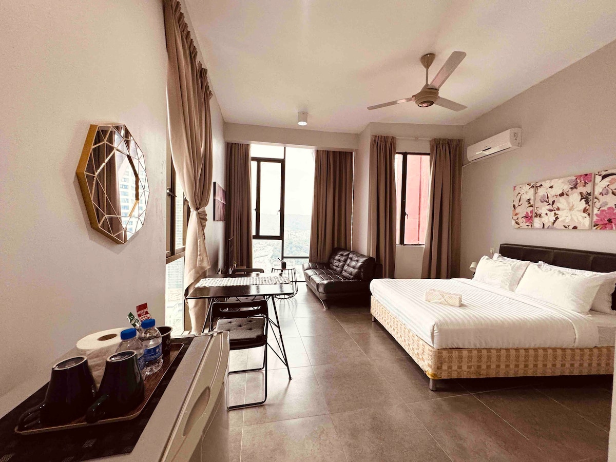 Welcome to your cozy escape in the heart of Empire Damansara. Whether you're here for business or a quick city getaway, this modern studio is your perfect little haven. Step inside and feel instantly at ease, bright natural light pours in through the large windows, offering beautiful views of the vibrant city below. The space is thoughtfully designed with chic décor, comfy furnishings, and everything you need for a relaxing stay.