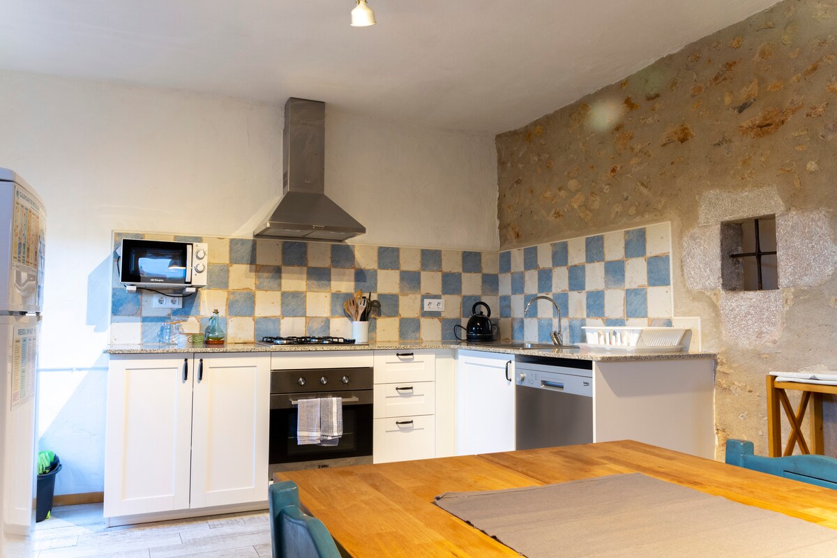 Nos estamos preparando para ofrecer a nuestros huéspedes las máximas medidas de higiene contra el Covid-19. Desinfección con Ozono de todas las estancias. Limpieza con productos desinfectantes aprobados por el Ministerio de Sanidad. Limpieza diaria zonas exteriores. Preciosa y acogedora casa - apartamento ubicada en el ala norte de una Masía Catalana del S. XVII A tan sólo 12 km de Figueres, ciudad natal del gran genio del surrealismo Salvador Dalí y entre un abanico de playas de ensueño, pueblos históricos y parques naturales. Con fácil acceso desde la autopista AP-7 y hacia las playas. La zona ofrece numerosas actividades que permiten a todos disfrutar al máximo de las maravillosas posibilidades de esta región. .Zona de parking, Entrada y jardín común .Nosotros vivimos en la misma finca, por lo que estamos a su disposición cuando lo necesiten, para informarles de la zona, tiendas donde comprar, sitios para visitar, restaurantes donde comer etc. Es un pequeño pueblo tranquilo, donde se pueden dar paseos caminando o en bicicleta y con el coche en pocos minutos estas en la playa. Figueres para visitar el Teatro Museo Salvador Dalí y en Cadaquès, precioso pueblo pescador donde se encuentra Portlligat para visitar la casa museo de Dalí parada de autobús junto a la finca. se puede aparcar en el exterior de la finca o en el parking en el interior de la misma Desde nuestra casa estan cerca de preciosas playas, unas mas convurridas y otras mucho mas tranquilas, del llamada triangulo Daliniano, formada por el teatro-museo Salvador Gala Dalir, su casa de Portlligat al lado de Cadaqués y el Castillo de Pubol última casa donde vivio el genio del surrealismo. La Preciosa ciudad de Girona con su casco antiguo de los mas bellos del país y muchos otros pueblos medievales y pesqueros.