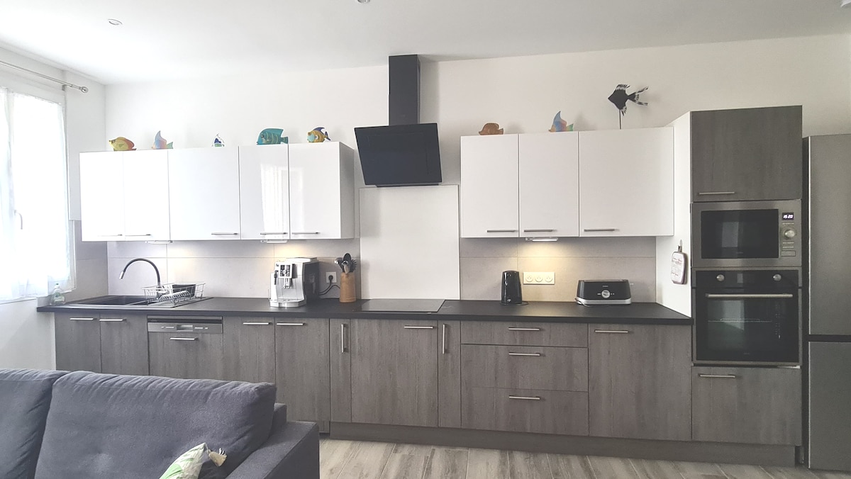 En el corazón de la talasoterapia, nuestro pequeño nido consta de un comedor con un sofá cama de 2 plazas muy cómodo y una cocina totalmente equipada, un dormitorio con 2 camas individuales o dobles de 140 cm, un baño y un aseo separado. Una terraza con vistas al mar con una mesa y 4 sillas. Tendrá a su disposición un televisor, wifi, lavadora... Un parking privado. Comercio a 10 minutos a pie. Ropa de cama opcional (70 € para 2 y 100 € para 4 personas).