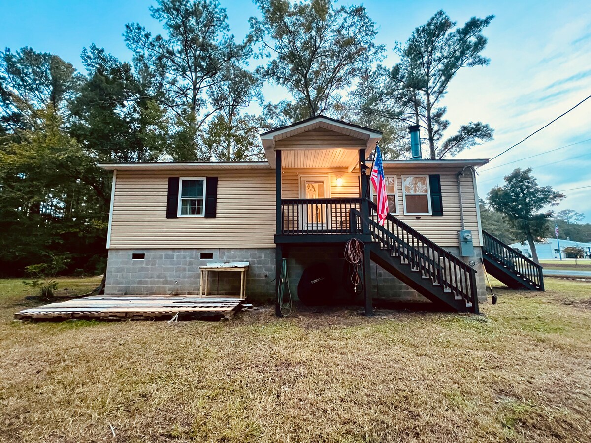 Hermosa y tranquila casa de campo en el corazón de la pintoresca ciudad de Belhaven, en el río Pungo. Pasa tus días de compras boutique en la ciudad, viendo la puesta de sol sobre el agua en el puerto. Excelentes refugios de pesca y vida silvestre locales. Disfruta de la playa frente al río en la ciudad. Pasa las noches comiendo en el gran porche trasero protegido y cocinando en la parrilla. Si es un poco fresco, acurrúcate en el interior frente a los troncos de gas y pasa un rato en familia jugando. ¡Amplio estacionamiento para tu barco!