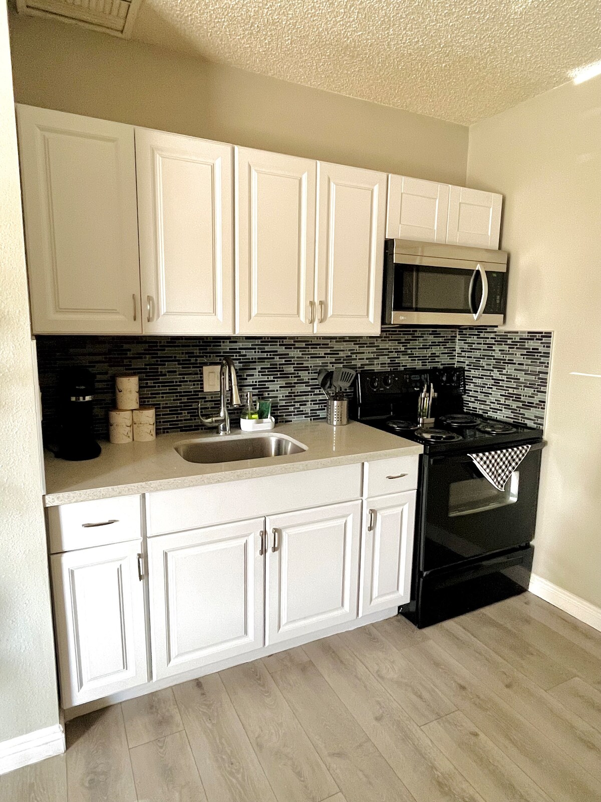 ¡Bienvenido a nuestra casa de huéspedes de lujo en una zona residencial segura y tranquila de Las Vegas! Nuestro estudio de concepto abierto está lleno de luz y es perfecto para una o dos personas. Hemos incluido toques de lujo y todas las comodidades del hogar, como ropa de cama de algodón y lino, un sofá de cuero auténtico y un televisor de 60", y encimeras de cuarzo. La entrada privada y el patio con luces centelleantes ofrecen un refugio sereno al final del día.