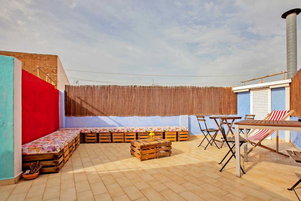Cómoda habitación doble con terraza, ideal para dos adultos, en un pequeño hostal privado y tranquilo. Los huéspedes tienen acceso a cuatro baños separados (compartidos pero privados), una cocina totalmente equipada y dos salas de estar con televisores, perfectas para relajarse después de un día en Lisboa. Equipado con aire acondicionado en verano y calefacción en invierno para el máximo confort. Nota: No se permiten niños menores de 12 años. ¡Esperamos que te sientas en casa!