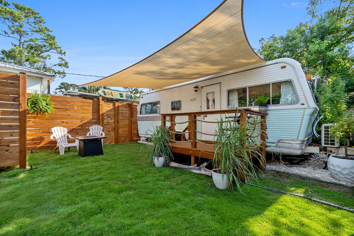 Ven a visitar nuestra granja centenaria. Este lujoso remolque de viaje se encuentra en nuestra granja de 3 1/2 acres y está a solo 20 minutos en coche de las playas más bonitas de la costa del Golfo. La propiedad es histórica y fue un burdel y una operación de contrabando durante la era de la prohibición. ¡Esto será glamping en su máxima expresión! Hermoso interior con una cocina totalmente equipada, chimenea, luces de fiesta y barbacoa. Ofrecemos comidas y servicios de estilo de pensión. ¡Este es el lugar ideal para relajarse y descansar!