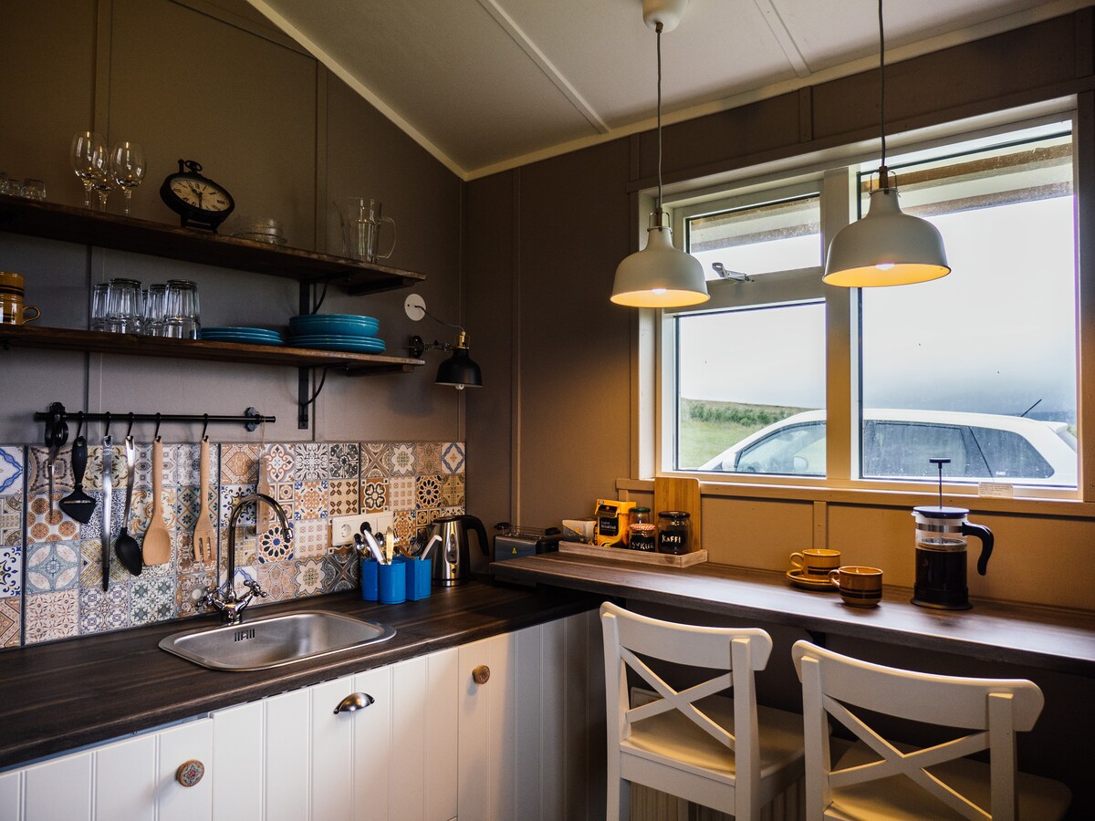 La casa de campo se encuentra en una pequeña y tranquila granja familiar, a 8 km de la ciudad de Egilsstaðir. Estas pequeñas casas son acogedoras y están climatizadas con energía geotérmica. Las cabañas se pueden reservar durante todo el año. Ofrecemos sábanas, toallas, té y café sin coste adicional. Los alrededores constan de un río, árboles, auroras boreales, hermosa naturaleza y durante el invierno es probable que incluso veas algunos renos deambulando.