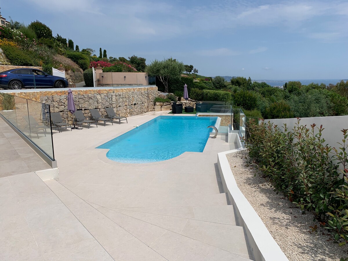 Magnífica villa con aire acondicionado de 240m² que ofrece 4 dormitorios y 3,5 baños en una parcela de 1.700m ² con vistas al mar sobre las islas Lerins (CANNES), vistas a la montaña, spa, jacuzzi, grandes terrazas, jardín, cocina totalmente equipada. En una zona tranquila y muy popular de Minelle en MANDELIEU-LA-NAPOULE Côte d 'Azur en la bahía de Cannes cerca del centro de la ciudad y cerca de las playas. Aparcamiento privado seguro para 3 coches grandes. 2.2 km u 8 minutos en coche a las playas