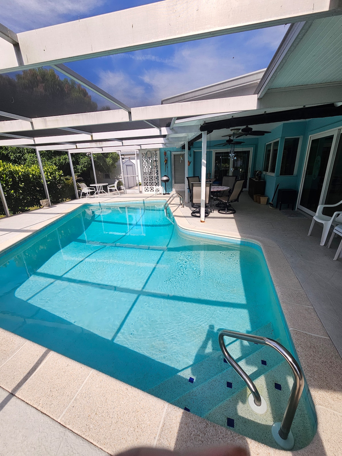 Bienvenido a nuestra casa unifamiliar con piscina recién reformada en el corazón de la histórica Bonita Springs. A menos de 5 millas de las playas. Puedes ir caminando a cafeterías, parques, restaurantes y todo tipo de mercados, etc. La sala de estar se extiende hacia el exterior en el enorme lanai cercado donde tenemos un nuevo sofá modular al aire libre. La piscina es grande y está climatizada. Una cocina muy mejorada con nuevos armarios de cierre suave, encimeras de cuarcita y electrodomésticos nuevos. Es un diseño cómodo de concepto abierto.
