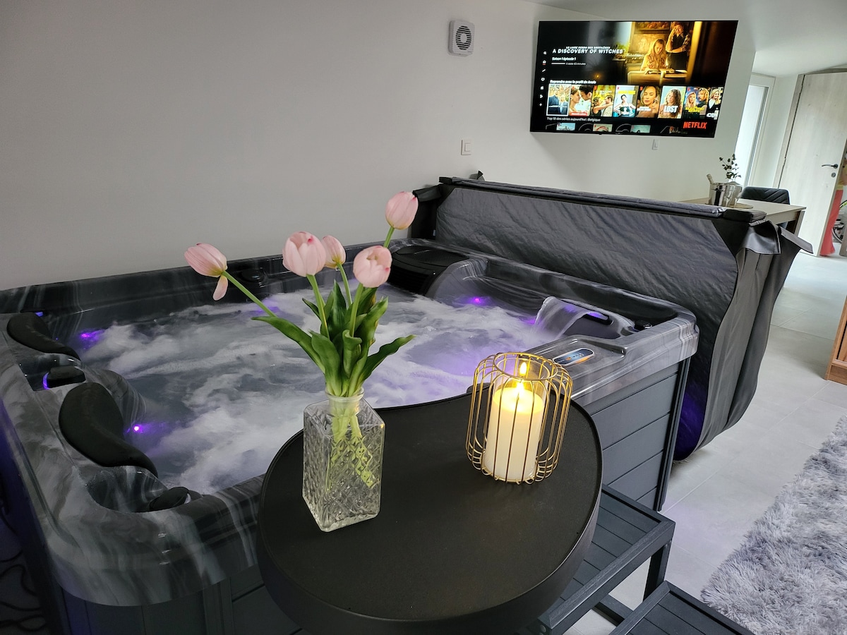 Relájese en este alojamiento tranquilo y elegante. Si desea un descanso, ¡nuestro alojamiento es para usted! Ponemos a su disposición las toallas y albornoces para el jacuzzi, las toallas y los tratamientos para la ducha. Agua, té y café también incluidos. Cama de 180 cm muy cómoda. Aire acondicionado reversible. Cocina equipada. Posibilidad de tener una tabla de aperitivo o un masaje hecho por una profesional 💝💝💝