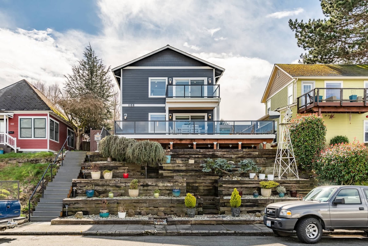 Little Blue House, walk downtown, views of Sound