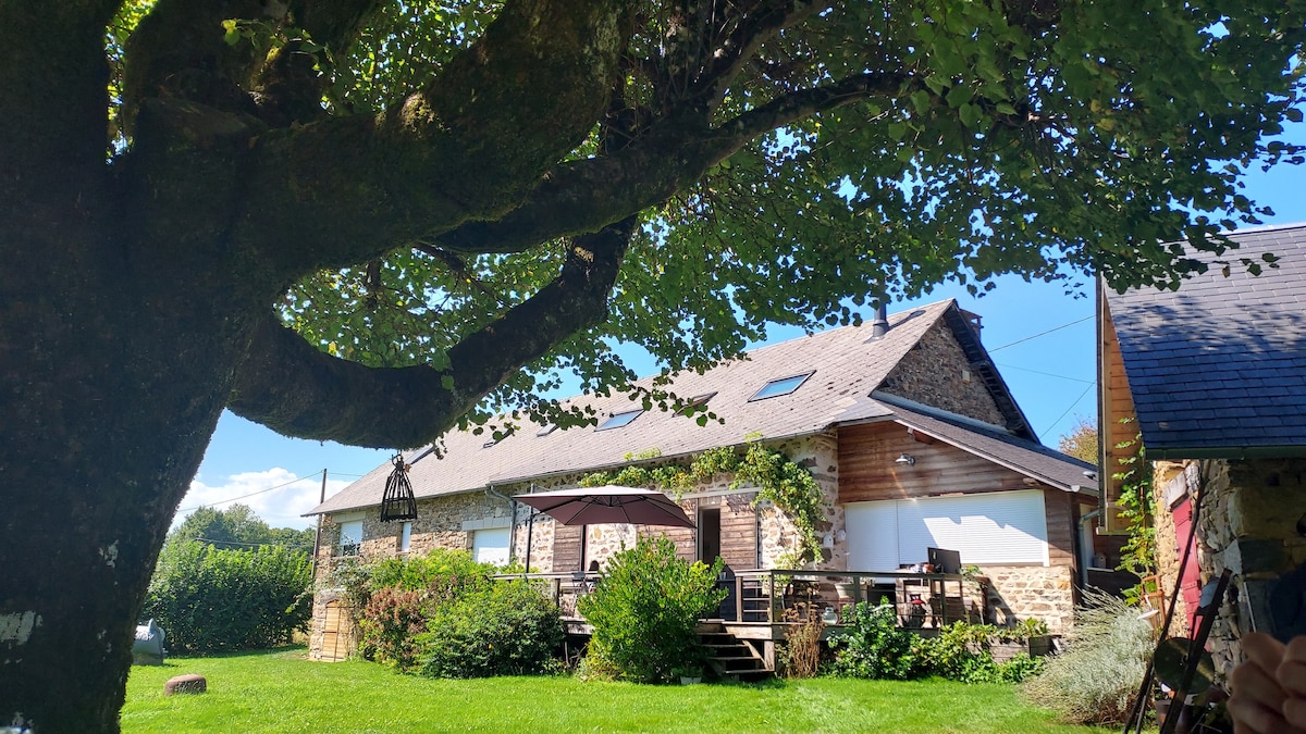 Jolie maison au coeur de la Corrèze totalement clôturée avec grand parc de 2000 M2 ,facile d'accès par une sortie d'autoroute A20. La maison est très bien équipée : grand salon avec TV , espace jeux pour enfants, espace lecture. Cuisine tout équipée. Cellier avec congélateur, lave linge, chaise haute , poussette. Grande chambre avec dressing, lit parapluie. Salle de bain douche a l'italienne, double vasque sèche cheveux et nombreux rangements. Les draps et serviettes sont fournis .