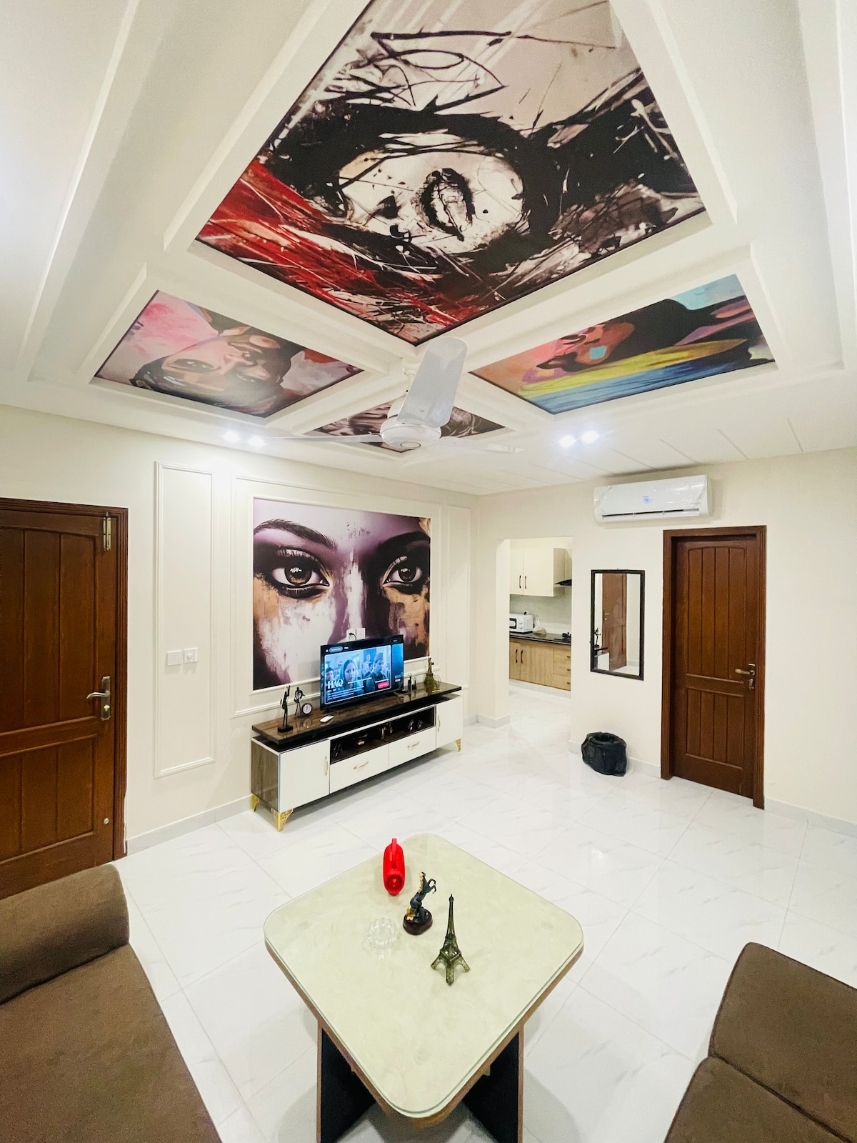 - Spacious rooms with comfortable beds and linens - Top most location in the town the heart of the city located at D GROUND near Zia book seller - High-speed Wi-Fi and entertainment options - Relaxing living area with TV and seating - Convenient location near public transport and attractions