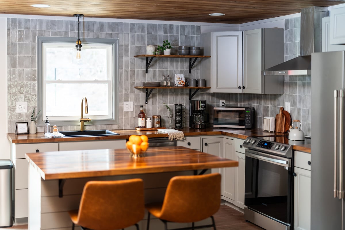 Enjoy a peaceful stay in our early 1800’s log cabin. The Cabin sits at the heart of Morris Orchard, a Virginia Century Farm. From the cabin porch, you will look across the pond and enjoy a view of High Peak Mountain, apple orchards, hayfields, and cattle grazing in the pastures. The cabin has been beautifully renovated, preserving the charm and history of the cabin, while adding all the modern amenities you would expect.
