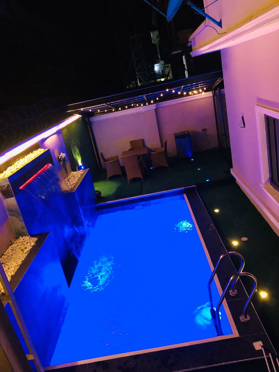Updated WiFi (STARLINK), Solar water heater, PS5, Airport Pick up/Drop off, daily driver services @ a fee. (Following guest complaints we upgraded!) Located in a serene secured gated estate with convenient access to all part of Abj. It’s quiet, unique, stylish & homely with exquisite furnishing. 247 electricity combination of solar/Inverter systems, gas/fuel power generators, fan, fully fitted modern kitchen, armed security. Pool table, relaxation swing, swimming pool & washing machine