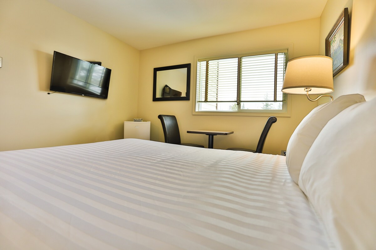 Esta suite recién renovada cuenta con una pequeña cocina y una cama tamaño queen de King-Koil. Las muchas comodidades incluyen un televisor inteligente de alta definición, internet de alta velocidad, barbacoa y armario de esquí. Situado a lo largo del río Elk, a solo tres minutos en coche de Fernie Alpine Resort o del parque provincial del monte Fernie Provincial Park y a un paseo rápido del centro histórico de Fernie. Tanto si te hospedas una noche, una semana o un mes, este es el espacio perfecto para tu viaje de negocios o escapada a la montaña.