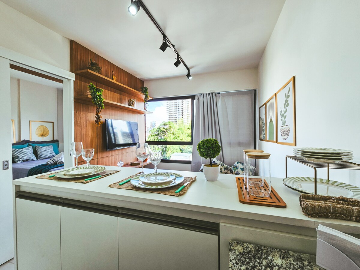 Disfruta de lo mejor de Stella Maris en este moderno estudio a solo 280 m de la playa. Con una ubicación privilegiada, estarás a pasos del mar y cerca de tiendas, mercados y restaurantes de la zona. La propiedad ofrece balcón, aire acondicionado y cocina totalmente equipada para tu comodidad en Salvador. Disfruta de las comodidades del edificio, que incluyen gimnasio y piscina en la azotea con vistas a la ciudad y al océano. ¡Reserva tu lugar cerca del mar y reserva tu estancia!