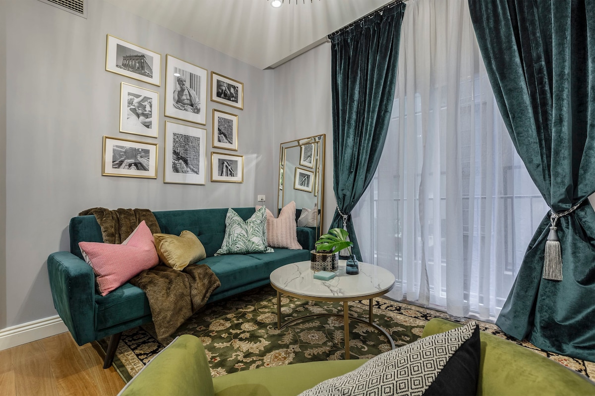 Entra para ser recibido por una sala de estar de planta abierta adornada con elegantes muebles de madera y detalles industriales. Los techos altos y las grandes ventanas inundan el espacio con luz natural, creando un ambiente cálido y acogedor. Pasea afuera hasta nuestro gran balcón con amplio espacio para que la familia se mezcle. El centro comercial District está a un tiro de piedra y ofrece supermercados, restaurantes, tiendas y entretenimiento. El frecuente servicio de tranvía en la planta baja te conecta con el resto del vibrante CBD.