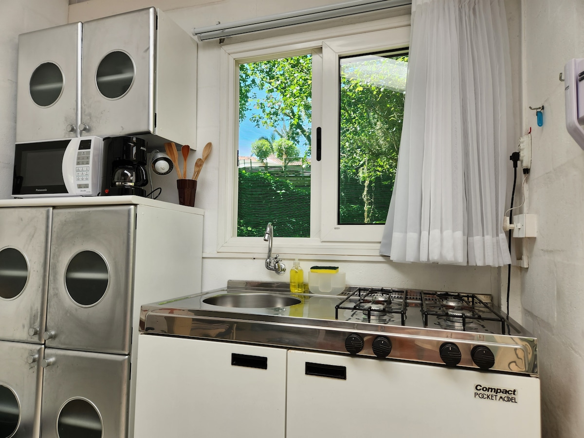 Studio tranquilo na praia com A/C