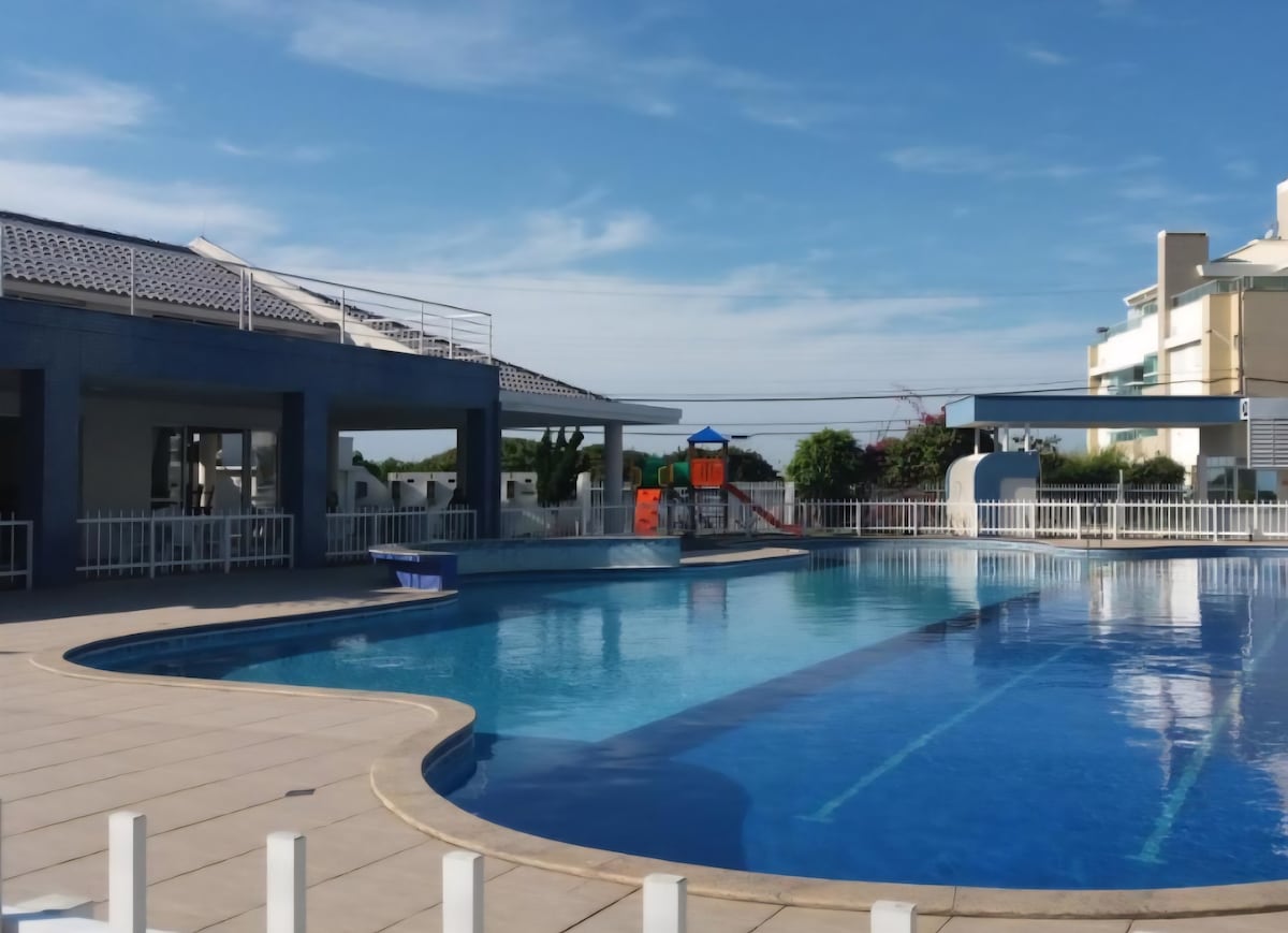 Relájese, elimine el estrés y disfrute del sol en uno de los lugares más bellos de Brasil! Desde el balcón, puede disfrutar de la brisa y disfrutar de un hermoso amanecer, despertarse y ver si el día es de playa o piscina climatizada. Apartamento con ubicación perfecta para solteros o parejas que les gusta disfrutar del movimiento de bares y restaurantes en Jurerê sin tener que caminar mucho. También para traer niños pequeños y disfrutar de la tranquilidad y los beneficios de un resort.