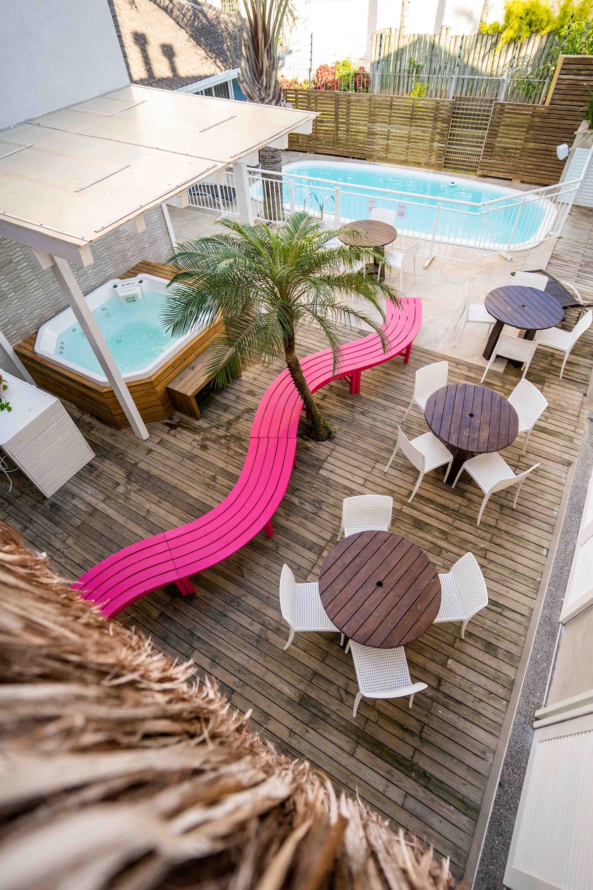 El estudio Bora Bora es un alojamiento completo para parejas, con dos tiendas, total privacidad y todas las comodidades necesarias para una estancia perfecta. Suite principal con piscina jaccuzzi, aire acondicionado, TV inteligente y vistas al mar, baño con ducha de gas central, terraza con barbacoa y hamaca, cocina completa, una pequeña sala de estar y garaje para tu auto.