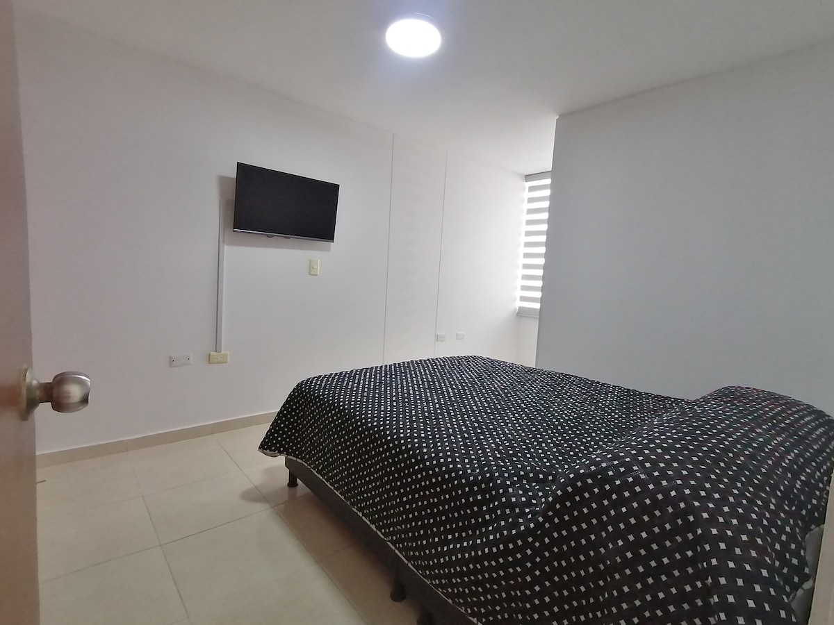 ¡Queremos ser tus anfitriones! Permítenos mostrarte por qué deberías reservar con nosotros: 1. La mejor ubicación de la zona 2. Apartamento entero 2/2 3. Diseñado para 4 huéspedes, 2 camas Queen 4. Completamente dotado. 5. Tv inteligente 6. Wifi 7. Parqueadero privado (1) 8. Lavadora. 9. Zona tranquila y segura 10. Condominio con piscina adultos y niños, sauna, turco, gimnasio. 11. A 7 min de la Foscal y la Cardiovascular.
