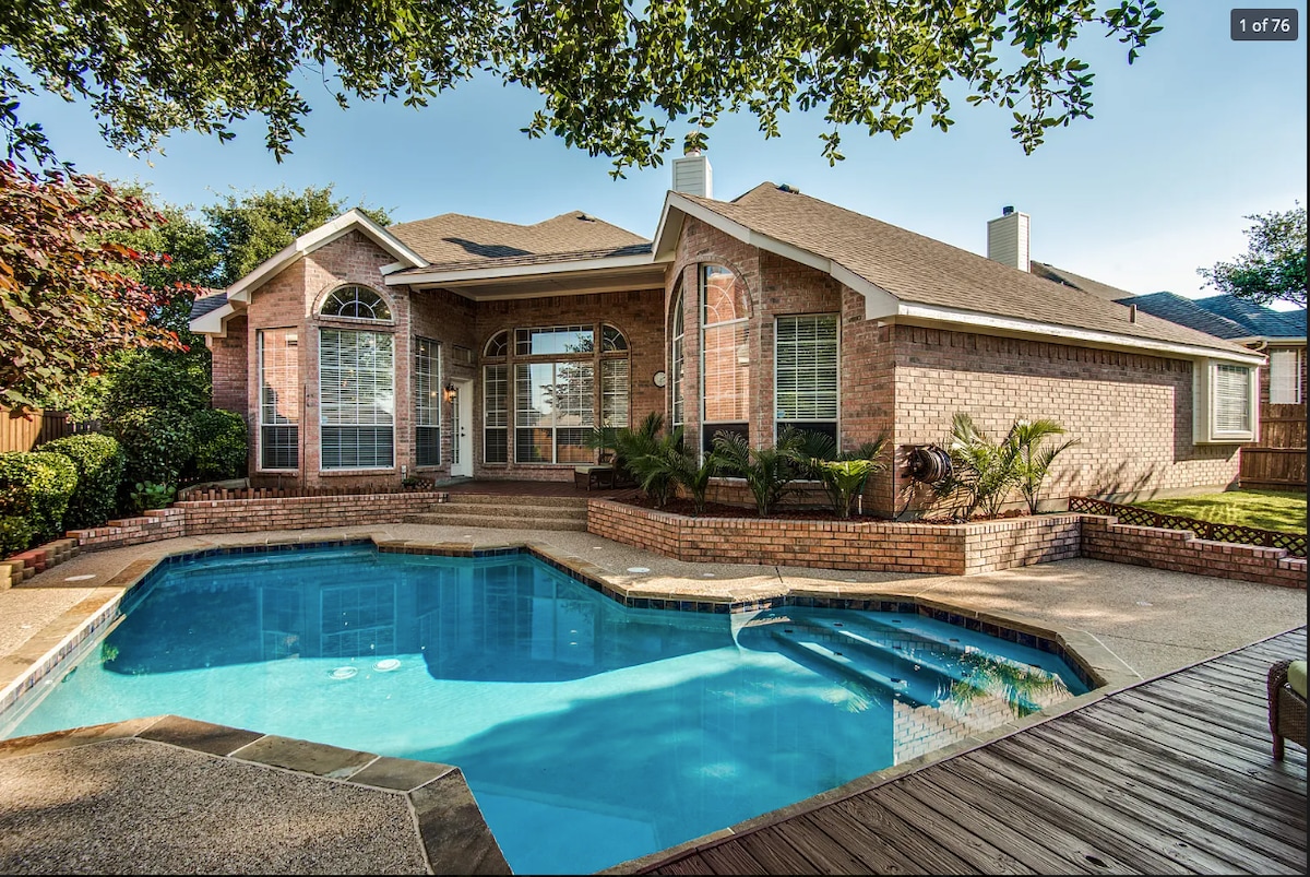 Urban Oasis, una escapada familiar única + ¡increíbles comodidades! La casa tiene capacidad para 8 personas (la propiedad tiene capacidad para 14 personas). Patio con pantalla con mesa de billar, hockey de aire, bañera de hidromasaje, barbacoa, fregadero, mininevera, TV de 72". Piscina de 30 pies, sofás, fogata, RV duerme +6, disponible después de 9+reserva. Aparca a 1 manzana de distancia con estanque de pesca abastecido, canchas de tenis, hermosos senderos pavimentados para caminar\andar en bicicleta a través del bosque local. El parque ofrece estacionamiento gratuito para eventos. 11 millas del aeropuerto DFW 19 millas de Frisco 29 millas de Dallas 33 mi Ft. Worth 14 millas de Irving