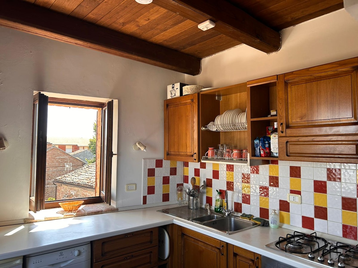 Appartamento Casa Cerqua di 100 mq finemente arredato, abbiamo recuperato tutto i vecchi materiali della casa nella recente ristrutturazione adeguando il vecchio casale alle più recenti norme anti sismiche. L'arredamento è un giusto mix tra moderno e antico, elegante ma funzionale. All'esterno un'ampia zona privata a disposizione degli ospiti, con zona pranzo ombreggiata e barbecue privato. Completa la proprietà una piscina 12x4,5 con portico ombreggiato a disposizione degli ospiti.