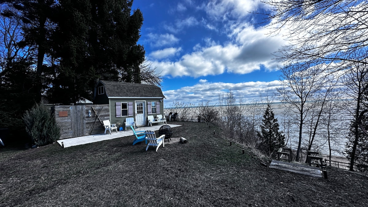 Serenity Tiny Guest House: acogedora y romántica casa pequeña con vistas al lago Huron. Cuenta con un loft parecido al treel con una cama Queen que ofrece fascinantes anteojos de amaneceres que pintan el cielo sobre el lago y nuestra playa privada de arena de 200 pies. Una experiencia verdaderamente romántica desde la comodidad de tu cama. El otro lado cuenta con una acogedora cama doble, ideal para un huésped adicional. Disfruta de Internet de fibra rápida, cocina pequeña, con microondas, fregadero, nevera, inodoro compostable y ducha al aire libre aislada. ¡La escapada perfecta a la playa!