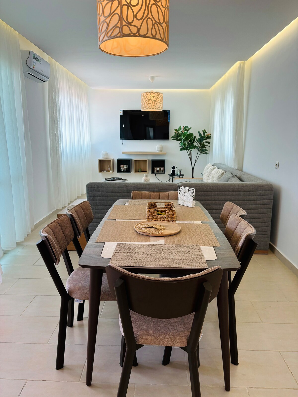 Modern 2-Bedroom Apartment – Cabo Negro, 100m from the Beach- First floor Enjoy your stay in this charming and fully furnished 2-bedroom apartment, ideally located just 100 meters from the beach in the beautiful coastal town of Cabo Negro. 🛏️ 2 Spacious Bedrooms 🍽️ Fully Equipped Kitchen – Includes a washing machine, gas stove, microwave, toaster, and all essential cookware and utensils. 🌅 2 Private Terraces 🚗 Free Underground Parking 🏊♂️ Swimming Pool – Access to the residence’s pool