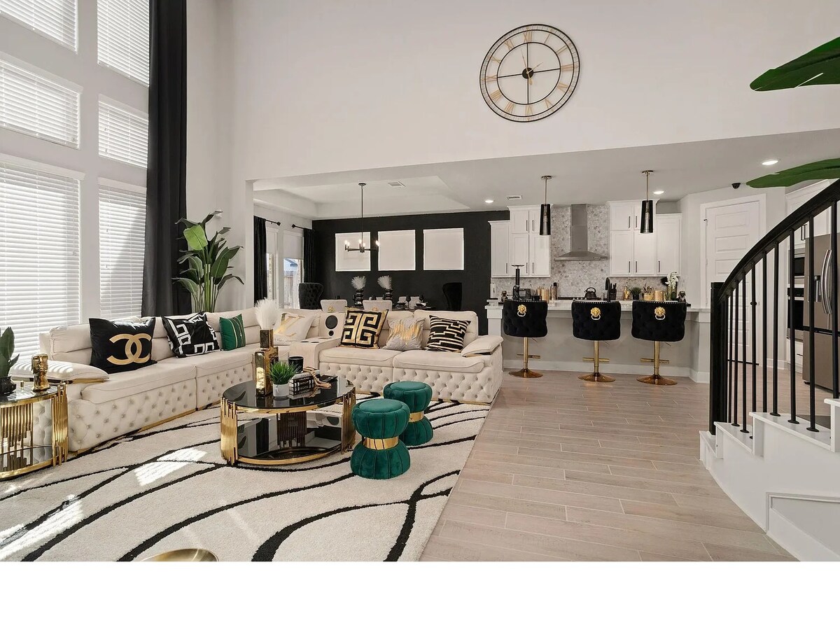 Retiro de lujo | 16 huéspedes | Sala de juegos | Cine | Oasis al aire libre Sumérgete en la relajación en este elegante refugio de 4 camas y 2 baños. La piscina privada, la acogedora chimenea, la sala de cine y la sala de juegos lo hacen perfecto para familias, amigos o viajes de trabajo. A pocos minutos del estadio NRG, el Centro Médico de Texas, el centro de Houston y más. ✨ Reserva ahora, esta estadía está hecha para impresionar.