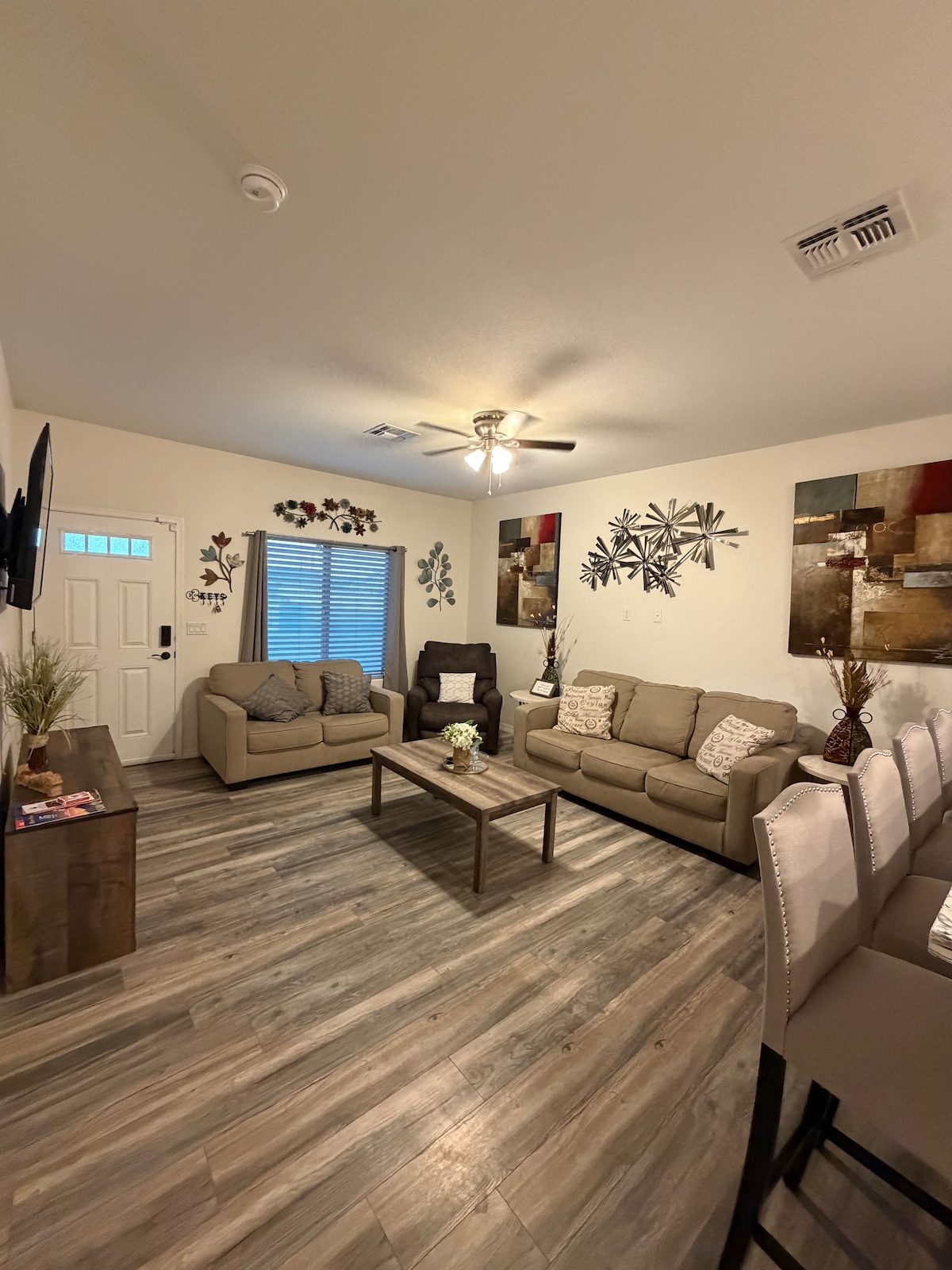 En esta hermosa casa, encontrarás cada habitación equipada con una TV de pantalla plana, espejo de cuerpo entero, ventilador de techo y una cama muy cómoda. La cocina está completamente equipada para tu conveniencia. Afuera, hay hay mucho espacio para todos tus juguetes, incluidos botes, casas rodantes, motos acuáticas, etc. El patio trasero cuenta con un patio completo con barbacoa y muebles cómodos. Esta casa es apta para mascotas, así que tus bebés peludos también son bienvenidos.