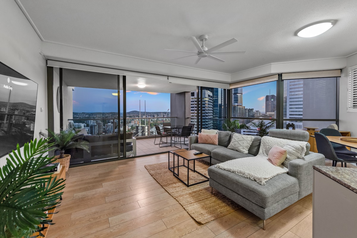 Located high above the 30th level with 3 bedrooms and 3 spectacular balcony views outlook of the Story Bridge, Brisbane River, Fortitude Valley (carpark included). 2 x new aircons in 2026! Enjoy the incredible balcony views, adventure out into Brisbane City with everything you could need within a 10min walk incl restaurants, supermarkets, cafes, bars, nightlight and the city. Enjoy a stylish experience at this centrally located Brisbane City apartment that is self contained incl full kitchen.