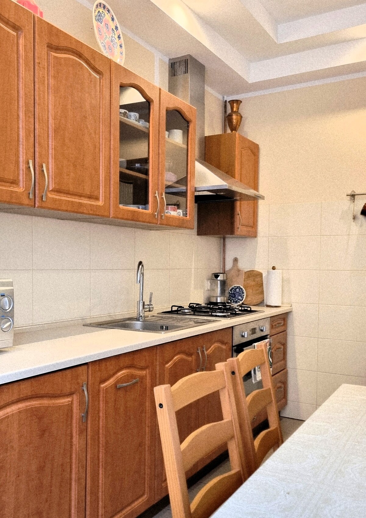 Un lugar elegante para alojarse en pleno centro. El apartamento consta de un salón con cocina, dos dormitorios, un vestidor y un baño. El apartamento está en el cuarto piso, el edificio no tiene ascensor. Un lugar elegante para alojarse justo en el centro. El apartamento consta de un salón con cocina, dos dormitorios, un armario y un baño. El apartamento está situado en el cuarto piso, el edificio no tiene ascensor.