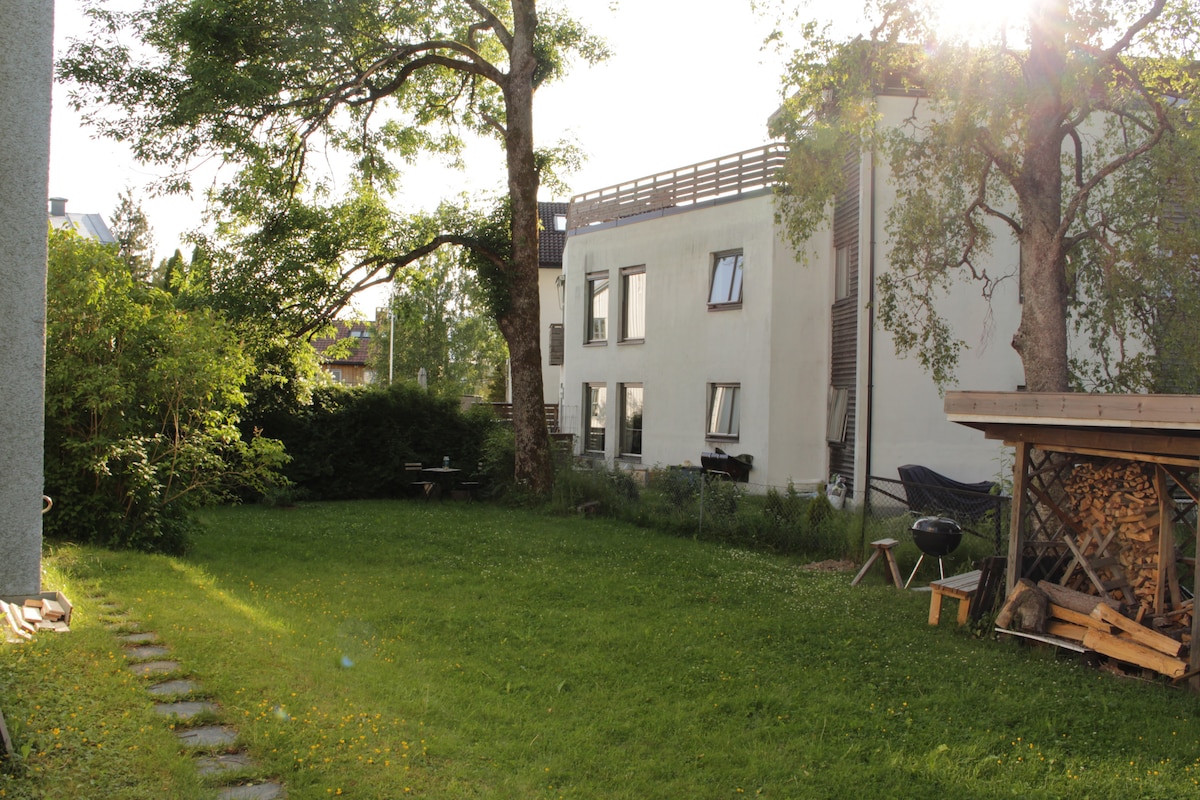 Entrada privada y patio donde puedes disfrutar del sol de la mañana y de la vista de Holmenkollen. El departamento está ubicado en Røa, en un barrio residencial tranquilo al oeste de Oslo. Hay varias grandes tiendas de comestibles, centro comercial, autobús y metro a solo 5 minutos del apartamento. El metro te llevará al centro de Oslo con todas las tiendas, museos y lugares de interés en 10 minutos. El autobús también es una opción si quieres ir a Nordmarka, el mar o al centro de la ciudad de Oslo. A solo 9 minutos en autobús de la estación de esquí alpino del parque de invierno de Oslo Skimore.