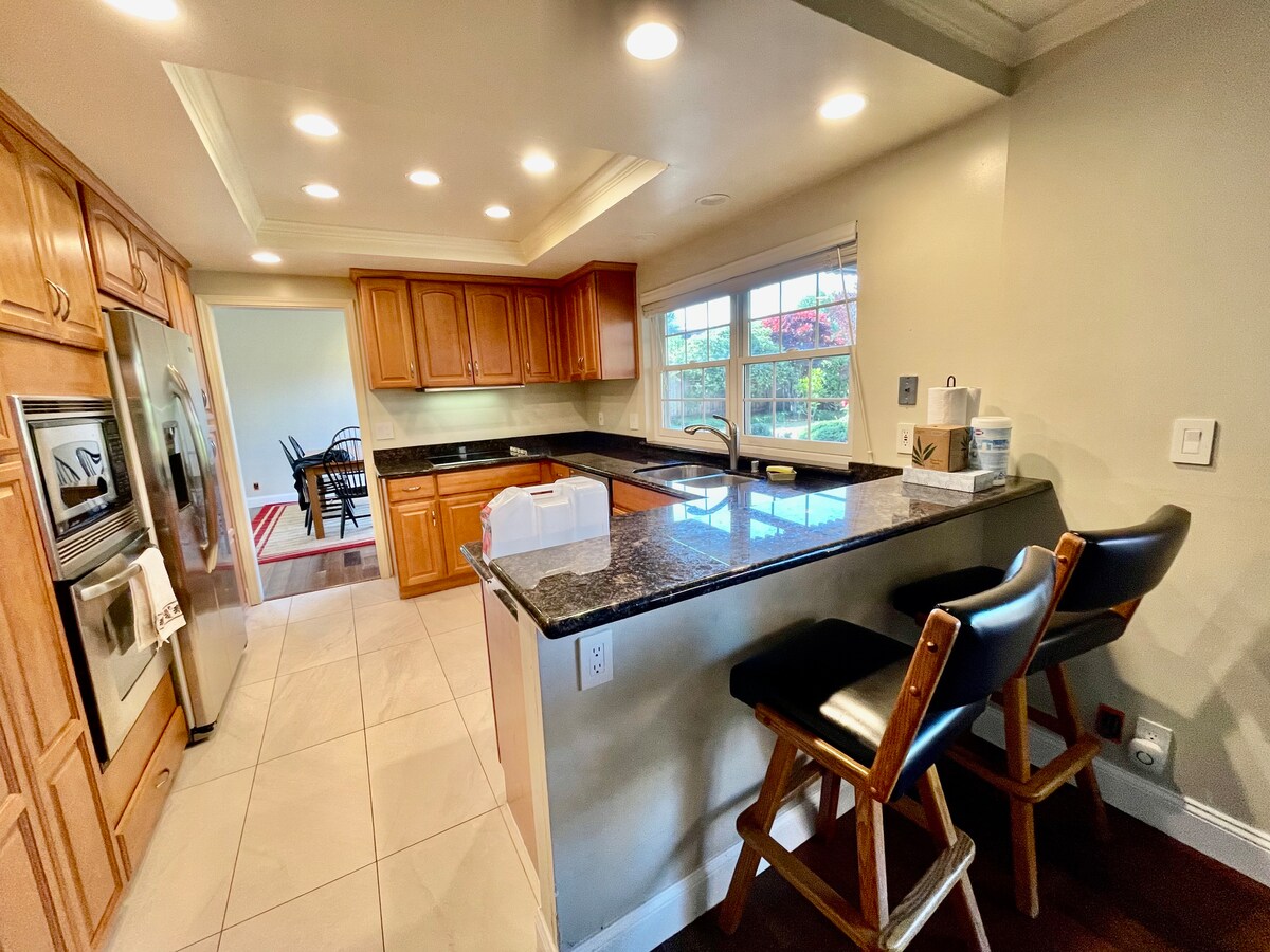 Amplia vivienda recién reformada en las colinas de Belmont con entrada privada y vistas a la bahía. Este adorable espacio es acogedor y estupendo para un respiro de fin de semana o trabajo a distancia. El aeropuerto SFO está a solo 15 minutos. Cerca de Stanford y San Carlos. A poca distancia en coche de rutas de senderismo y a 30 minutos del océano Pacífico. Fácil acceso a San Francisco y San José, a través de las autopistas 101, 280 y 92. 🌞 Energía solar durante el día con batería 🔋 de respaldo por la noche. Sin interrupciones y respetuoso con el medio ambiente. 🌲