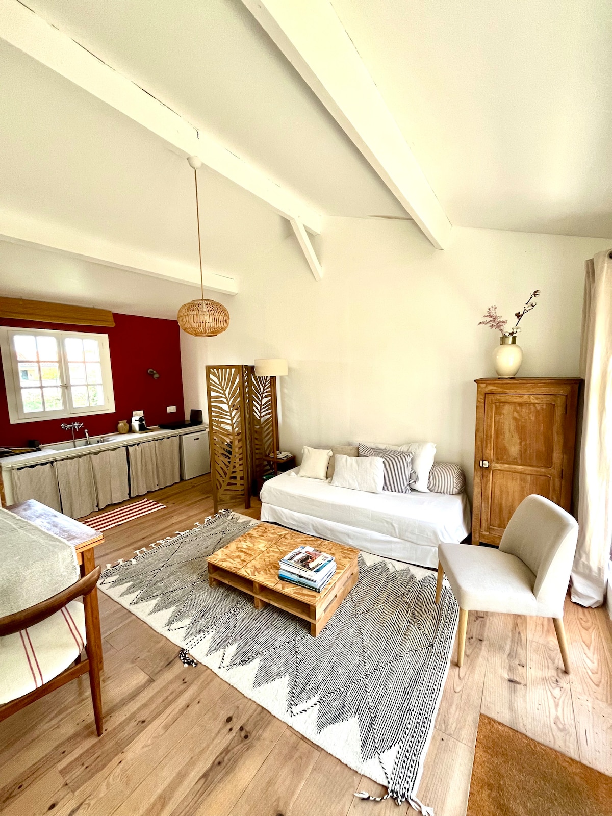 Villas Véronique, un bout de paradis sur l’Ile de Ré Un endroit unique pour une nouvelle approche du luxe. Superbe villa avec piscine chauffée privative à 50 m de la mer. La pièce à vivre est ouverte sur l'extérieur. Une chambre avec un lit double et une literie de grande qualité communique avec le salon par l'intermédiaire d'une grande porte sculptée en bois de palissandre. La deuxième chambre possède un lit simple. La salle de bain dispose d'une douche à l'italienne en pierre naturelle.