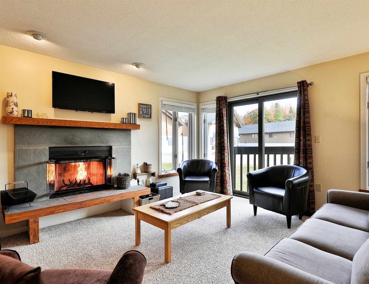 A solo unos pasos de las increíbles pistas de Okemo, el edificio C es la propiedad más cercana al ascensor A-Quad/B-Quad y este edificio ofrece un cómodo aparcamiento justo debajo y wifi gratuito (módem Xfinity dedicado, sin problemas de videoconferencia). Te encantará este acogedor alojamiento con suelo de madera, balcón privado y sol después de esquiar. Gran exposición al sol. La chimenea se ha actualizado a chimenea eléctrica a partir de la temporada 2023-2024.